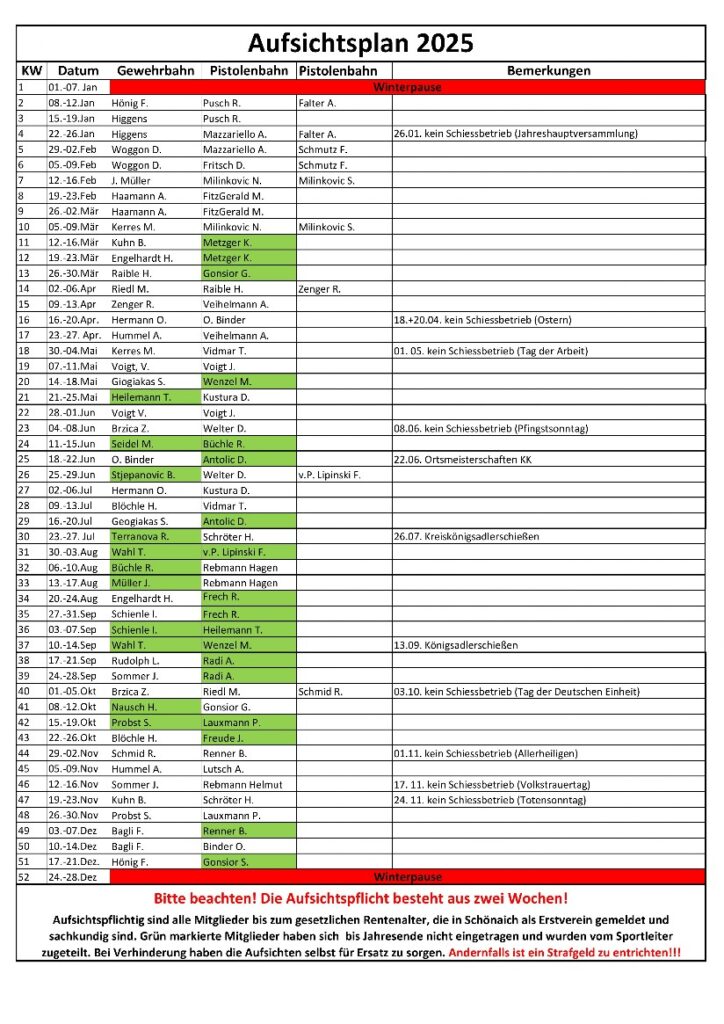 Hier die Übersicht der eingeteilten Aufsichten für 2025: