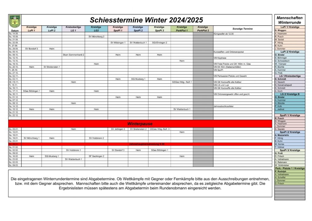 Hier die Schießtermine der aktuellen Sommer- bzw. Winterrunde: